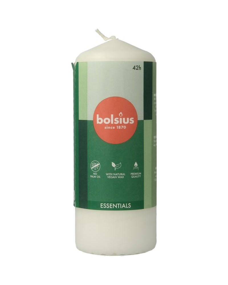 De Bolsius gladde stompkaars in de kleur ivoorwit is 15cm hoog en brandt wel 42 uur. Gemaakt met liefde voor mens en planeet, zonder palmolie en met natuurlijke vegan wax.