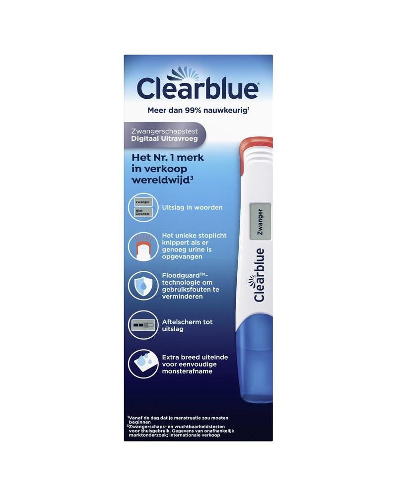 - Clearblue is veruit het nauwkeurigst: Clearblue is meer dan 99% nauwkeurig vanaf de dag waarop uw menstruatie zou moeten beginnen