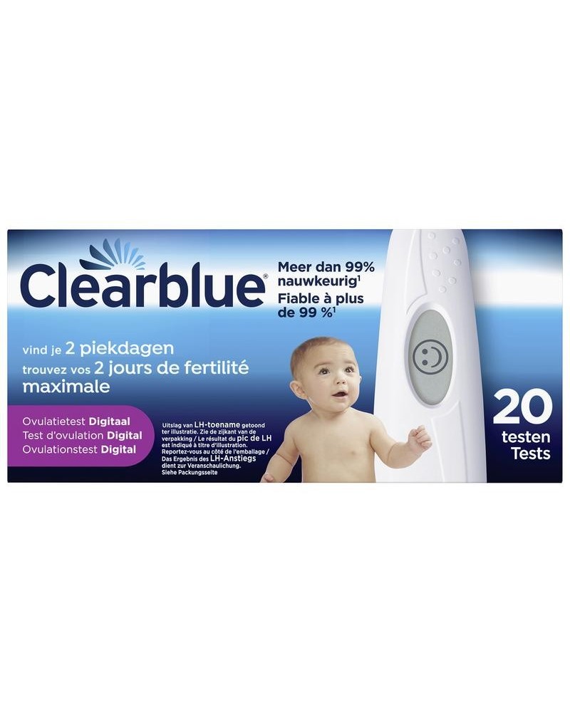 In elke cyclus zijn er slechts enkele dagen waarop een vrouw vruchtbaar is. Als je dus zwanger probeert te worden, is het erg belangrijk dat je op deze dagen seks hebt. De Clearblue Digitale Ovulatietest helpt je je kansen op een natuurlijke zwangerschap te verhogen door je twee meest vruchtbare dagen elke cyclus te bepalen door de wijzigingen in een belangrijk vruchtbaarheidshormoon te meten: luteïniserend hormoon (LH). Het is nauwkeuriger dan kalender- en temperatuurmethodes1 en geeft je onmiskenbare duidelijke resultaten op een digitaal scherm.