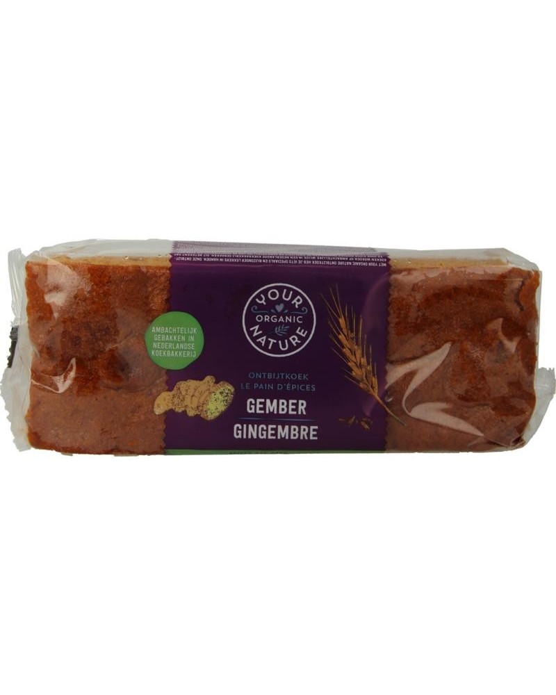Invertsuikerstroop, ROGGEbloem* (TARWE) (34%), geconfijte gember* (10%)(gember* 50%, suiker* 50%), water, azijn*, specerijen*, rijsmiddel (natriumbicarbonaat).