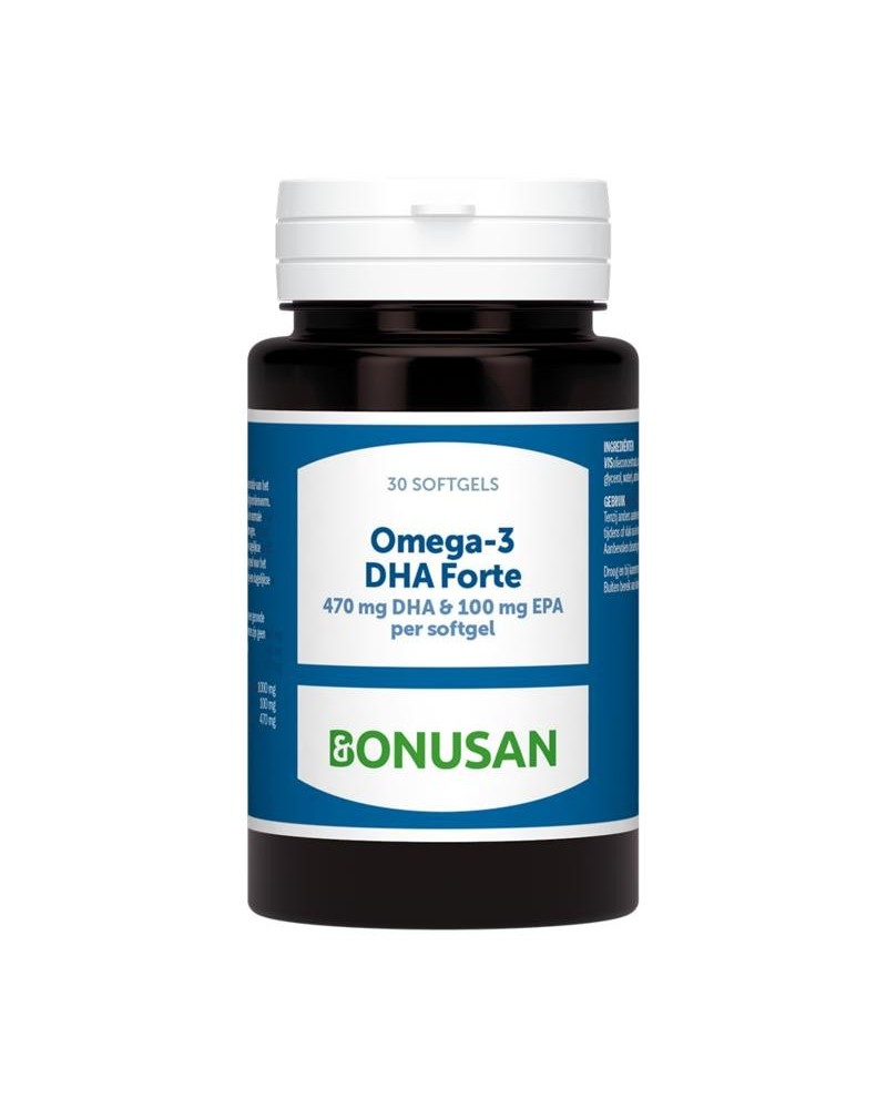 Omega-3 vetzuren, waar DHA deel van uitmaakt, zijn een groep met meervoudig onverzadigd vetzuren en belangrijke bouwstoffen voor het menselijk lichaam. DHA halen we uit onze voeding. Mocht het niet lukken voldoende DHA-rijke voeding te eten, of heeft ons lichaam moeite om DHA uit de andere omega-3 vetzuren om te zetten, dan kan Bonusan Omega-3 DHA Forte uitkomst bieden.