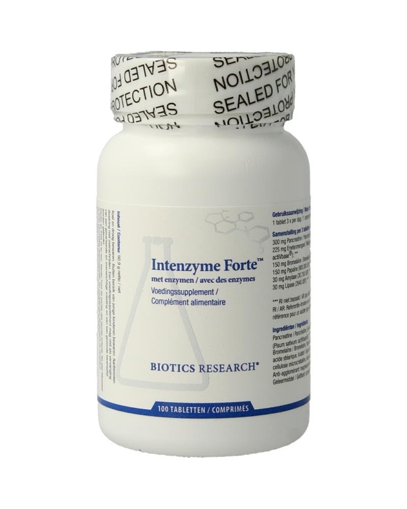 Pancreatine, Erwtenmengsel (Pisum sativum: actiVbase®), Bromelaïne, Papaïne, stabilisator: stearinezuur, vulstof: microkristallijne cellulose, amylase, lipase, antiklontermiddel: magnesiumstearaat, geleermiddel: schellak.