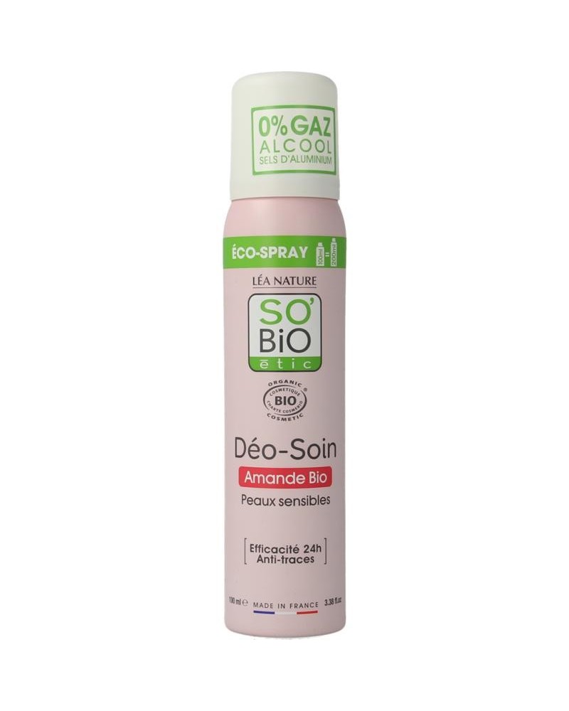 SO'BiO étic for Women Deo Spray Almond is 99% natuurlijk van samenstelling en 20% van de ingrediënten is afkomstig van biologische landbouw.
