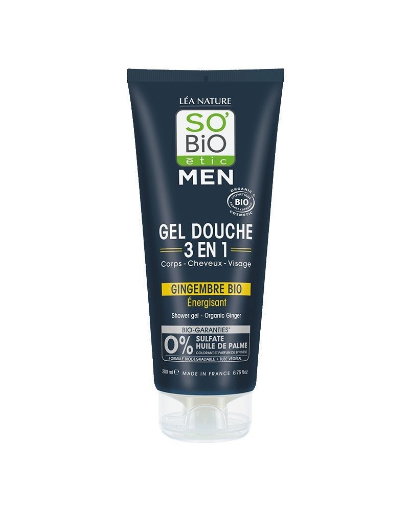 Ontdek de verkwikkende 3-in-1 shower gel voor mannen van SO'BiO étic! De handige alles-in-één formule reinigt het lichaam, gezicht en haar en is speciaal ontwikkeld voor onder de douche. Naast een effectieve werking, zorgt de biololigische samenstelling voor een uitermate zachte huid. Dankzij de toevoeging van biologische gember uit Madagascar biedt deze douchegel een kruidige geur, waardoor je je binnen no-time fris en energiek voelt! Vrij van sulfaten, parabenen, microplastics en pfas dus zorgeloos en duurzaam genieten. Dit product is vegan van samenstelling en Cosmebio/Ecocert gecertificeerd.