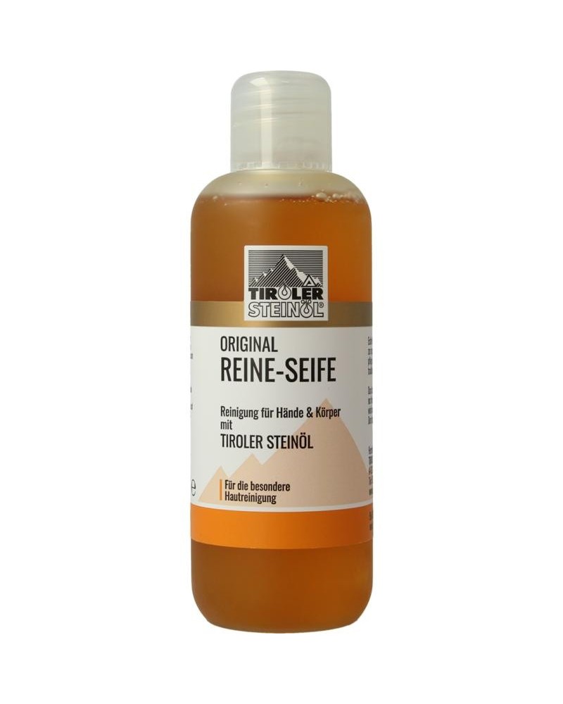 Aqua (reines Tiroler Gebirgs-Quellwasser), Potassium Tallate, Potassium Oleate, Potassium Stearate, Potassium Palmitate, Potassium Linoleate, Potassium Laurate, Potassium Myristate, Glycerin, Citric Acid, Sodium Shale Oil Sulfonate (Tiroler Steinöl-Wasserlöslich), Pinus Sylvestris Leaf Oil, Helianthus Annuus Seed Oil, Tocopherol, Parfum, Limonene, Linalool.