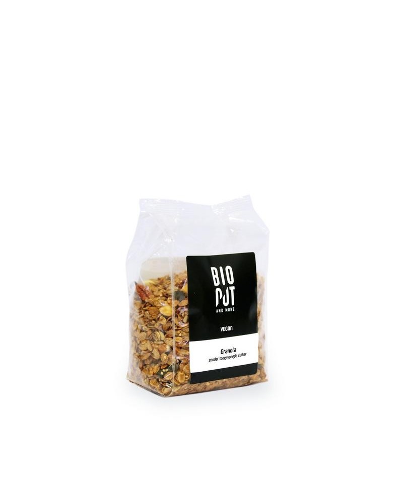 Deze vegan granola is nieuw in het assortiment. De granola wordt langzaam geroosterd op basis van roggevlokken, zonnebloempitten en inuline tot deze lichtbruin gekleurd en knapperig is.