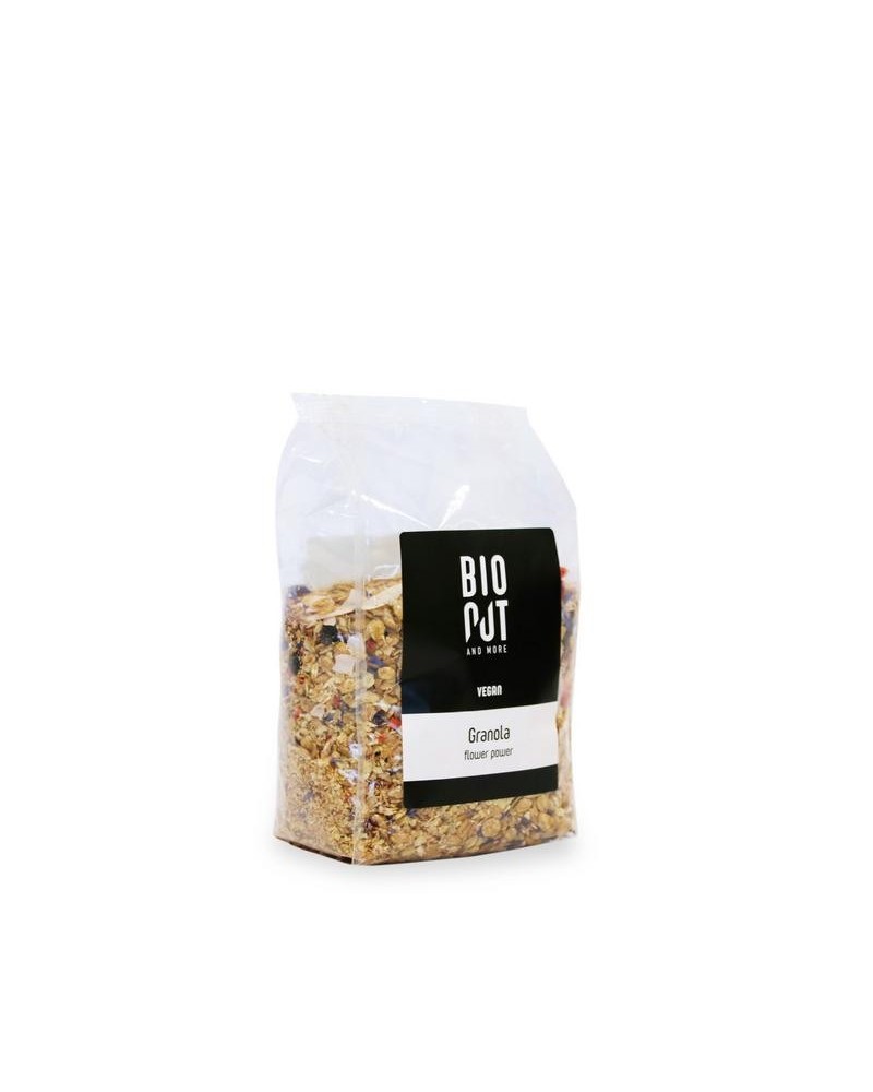 Deze vegan granola is een van de bestverkopende ontbijtproducten. Omdat de smaak is om voor terug te komen: het subtiele aroma van de bloemen gaat heel mooi samen met die van het gevriesdroogde fruit en de aan de basis granola toegevoegde kokos.