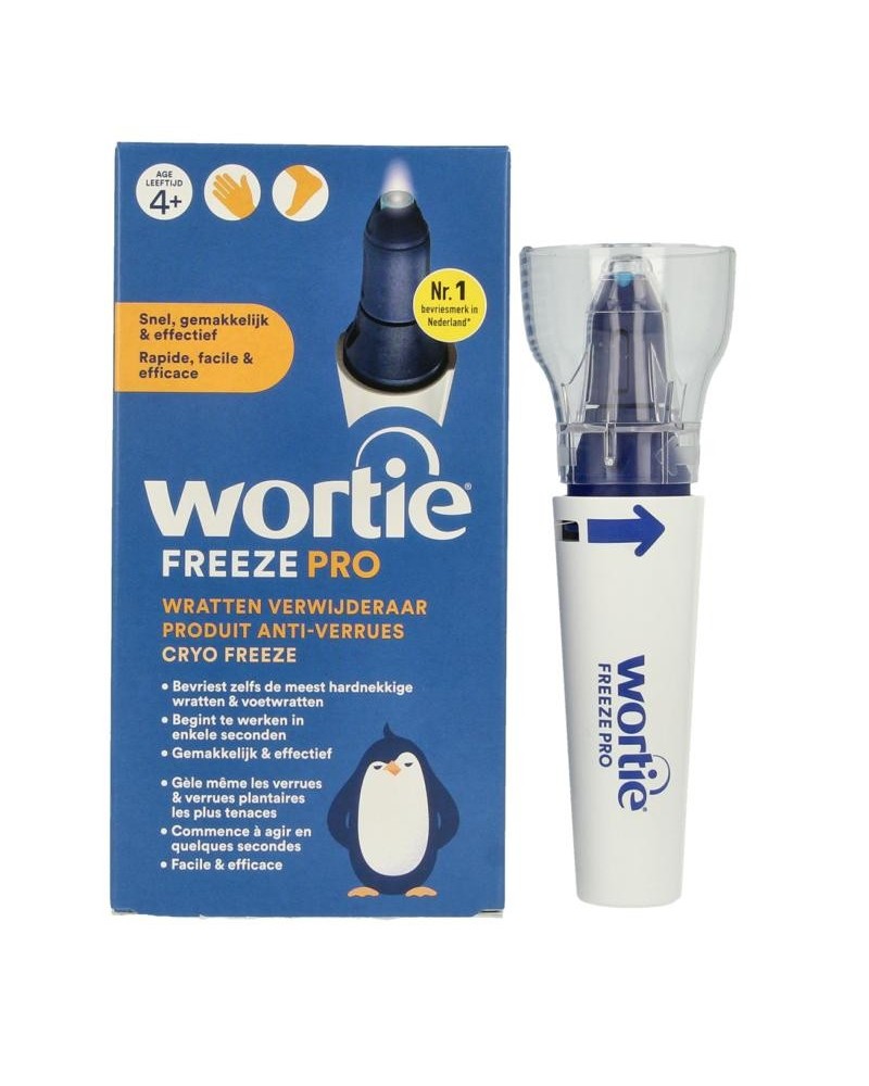 Wortie Freeze Pro is gebaseerd op dezelfde bevriezingstechnologie die door de dokter wordt gebruikt. Het biedt een effectieve en snelle behandelingsmethode voor het verwijderen van wratten en voetwratten door deze op een directe & precieze manier te bevriezen, waardoor de wrat of voetwrat binnen 10 tot 14 dagen verdwijnt, meestal na één keer aanbrengen. Tegen die tijd heeft zich eronder een gezonde nieuwe huid gevormd. Als een wrat, voetwrat of een deel ervan twee weken na de behandeling overblijft, kun je het veilig een 2e of 3e keer behandelen. Als je een wrat/voetwrat wilt verwijderen die groter is dan 7,5 mm, ga dan naar je huisarts.