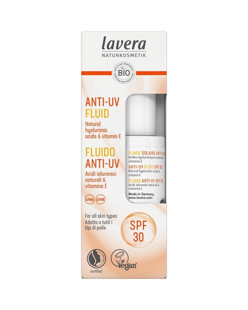 Ontdek de lavera sensatie van dagelijkse, natuurlijke beschermende huidverzorging. Anti-UV Fluid SPF 30 met natuurlijke hyaluronzuur en antioxidant vitamine E maakt je dagelijkse huidverzorgingsritueel compleet en beschermt je huid tegen schadelijke UVA/UVB straling met directe en betrouwbare resultaten.