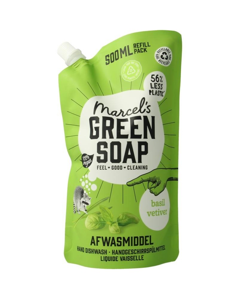 Marcel’s Green Soap afwasmiddel Basilicum & Vetiver is gemaakt van plantaardige zepen, vegan, minstens 97% biologisch afbreekbaar en komt in een fles van 100% gerecycled plastic. Marcel’s Green Soap afwasmiddel is gemaakt van plantaardige zepen en dus vriendelijk voor het milieu, je huis én je lichaam. Verrijkt met essentiële olie van Basilicum en Vetiver gras en een heerlijk natuurlijk Basilicum & Vetiver parfum, zodat afwassen (we durven het bijna niet te zeggen) een echte ‘geurbeleving’ wordt. En terwijl je wordt opgeslokt door die intense ervaring wordt de huid van je handen gelijk lekker verzorgd door het zachte schuim en de verrijkende ingrediënten. Het doen van de afwas was nog nooit zo ontspannen!