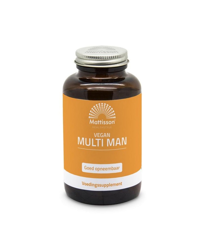 De Mattisson Multi Man is zorgvuldig samengesteld door een orthomoleculair therapeut om te voorzien in de voedingsbehoeften van de gemiddelde volwassen man. Dit supplement bestaat uit hoogwaardige actieve ingrediënten en dient als aanvulling op een uitgebalanceerd dieet. Het blijft essentieel om voldoende voedingstoffen uit bijvoorbeeld groenten, fruit, noten, zaden, vis en schaal- en schelpdieren te consumeren om een goede gezondheid te bevorderen.