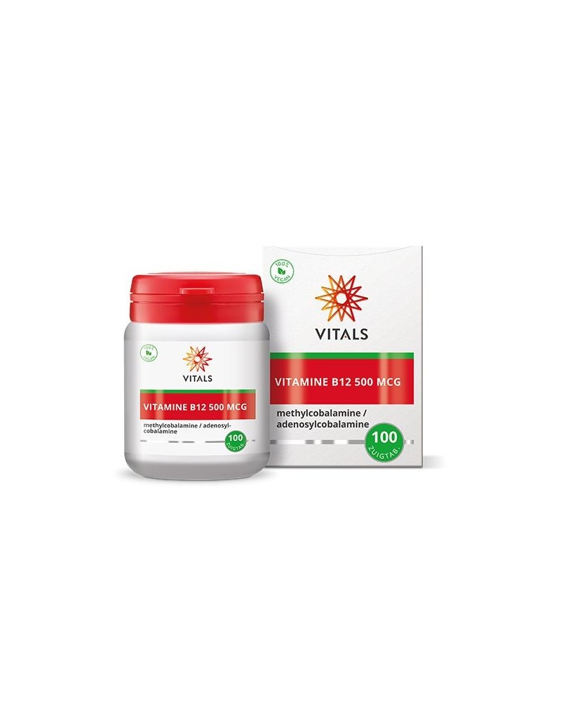 Vitamine B12 500 mcg van Vitals bestaat uit zuigtabletjes met een onderhoudsdosering van de biologisch actieve vormen methylcobalamine en adenosylcobalamine (ook wel dibencozide genoemd). Dit zijn de vormen zoals vitamine B12 in de voeding voorkomt en door het lichaam gebruikt wordt. In veel andere vitamine B12-producten wordt gebruikgemaakt van cyanocobalamine, een synthetische vorm die zo niet in de natuur voorkomt. Hierbij is de cobalamine sterk gebonden aan cyanide, dat eerst losgekoppeld moet worden. Cyanide heeft verder geen functie in het lichaam en zal dus uitgescheiden moeten worden.
