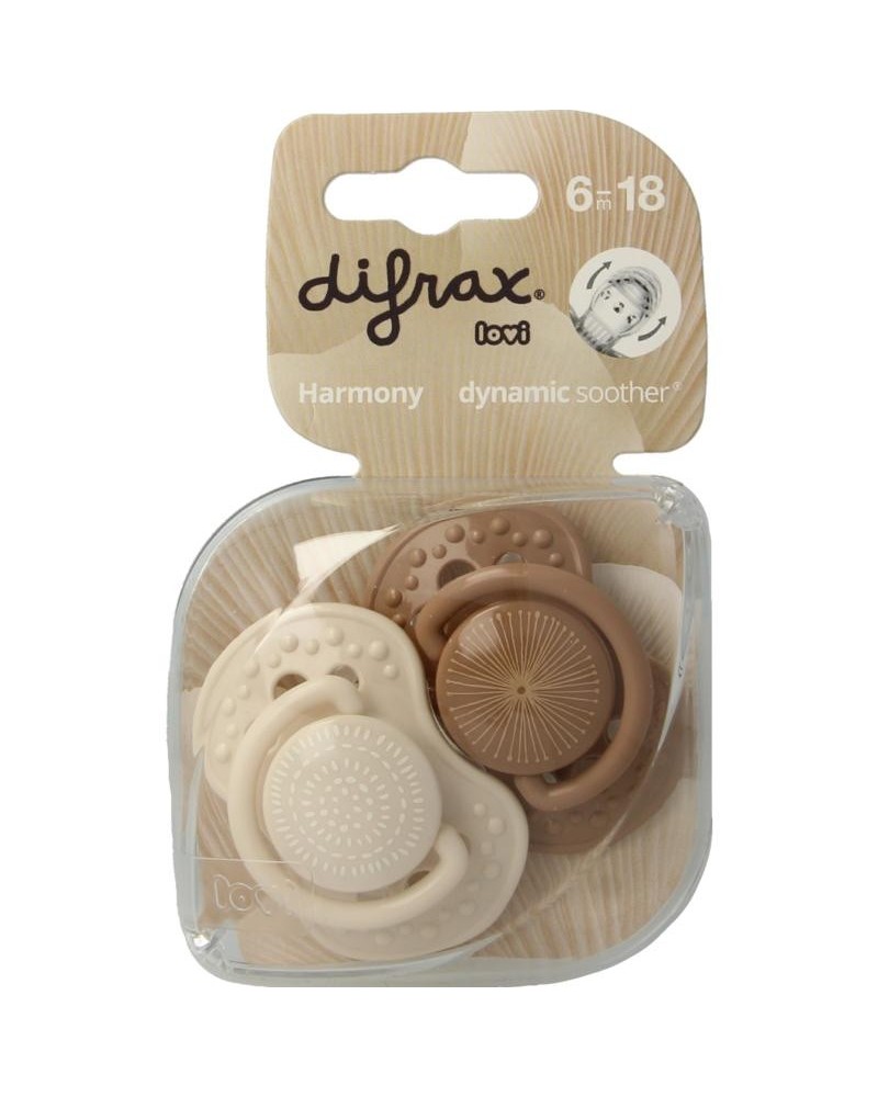 Harmony is een collectie die verwijst naar de trends zoals minimalisme, rust en verbondenheid met de natuur. Het zuiggedeelte van de fopspeen is dynamisch en is opgebouwd uit meerdere siliconenlagen van verschillende diktes. Dankzij deze lagen beweegt de top van het zuiggedeelte mee met het natuurlijke zuigritme.