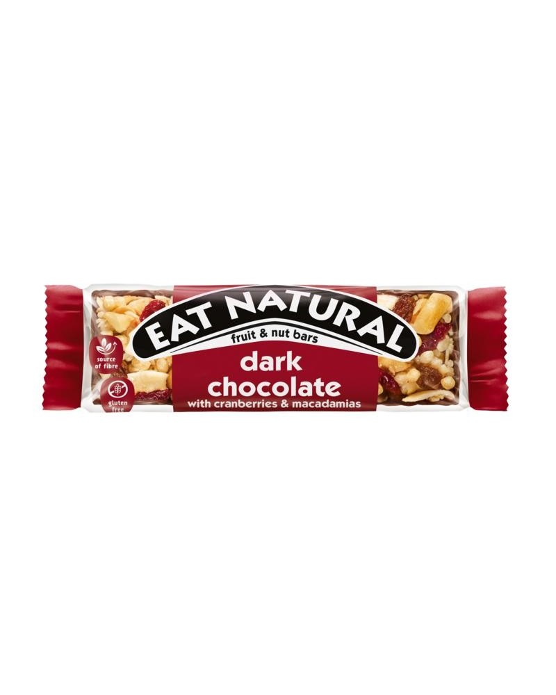 Reep met pure chocolade, cranberries, macadamianoten, gepofte rijst en honing.