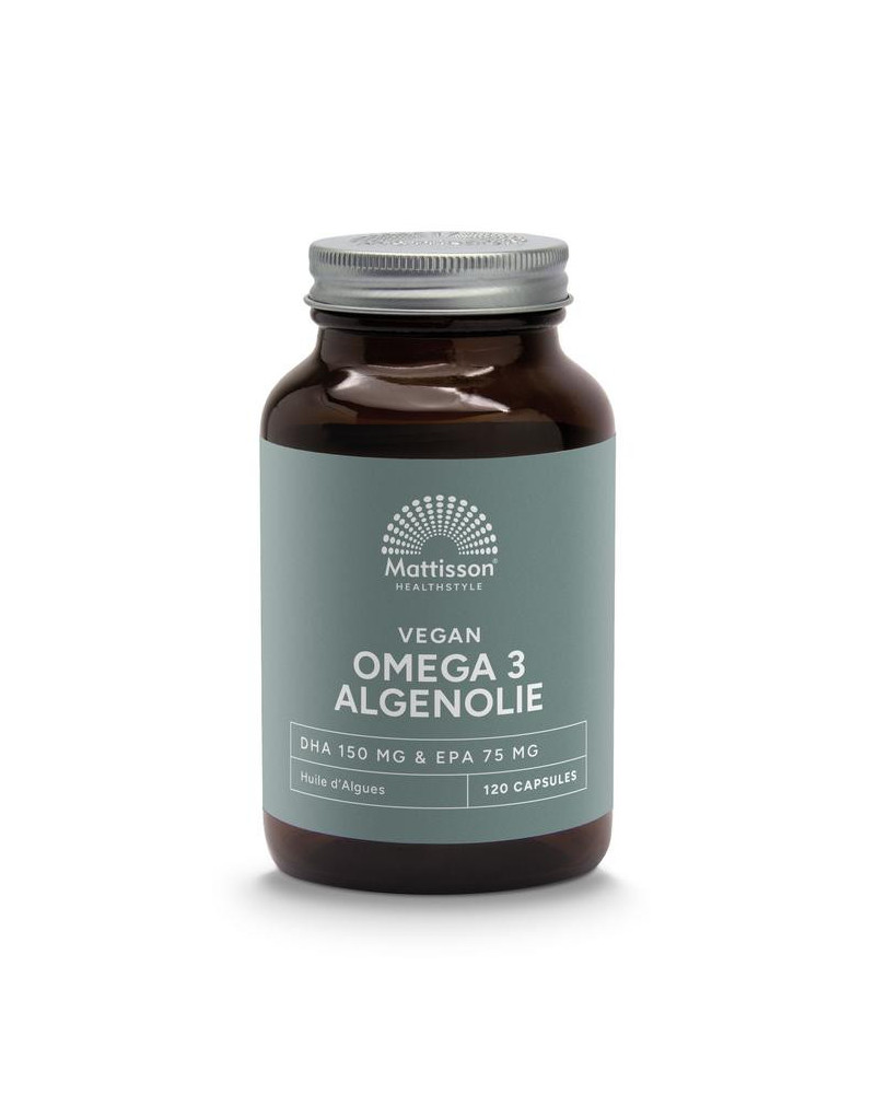 Algenolie is een 100% plantaardig Omega-3 supplement (DHA 150 mg & EPA 75 mg) en wordt gemaakt van gekweekte algen. Het is hiermee een duurzame en vegan vervanger voor omega-3 supplementen uit visolie.