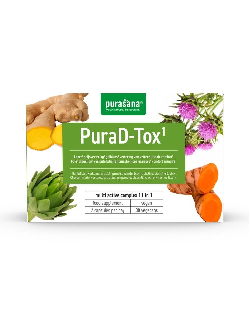 PuraD-tox is een 11-in-1 nutraceutical supplement dat de leverfunctie, spijsvertering, nierfunctie en urinewegen ondersteunt met extracten zoals mariadistel, artisjok en paardenbloem.*