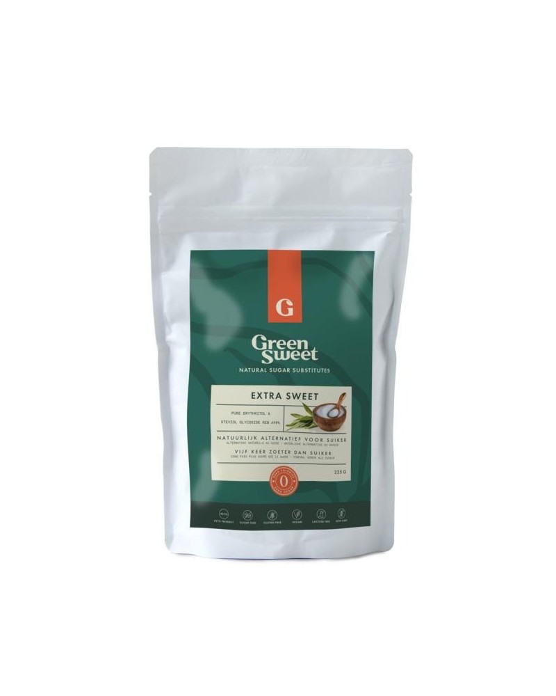 Extra Sweet is een 100% natuurlijk alternatief voor suiker. Het bevat 0 calorieën, is vijf maal zoeter dan suiker en is niet schadelijk voor het gebit.