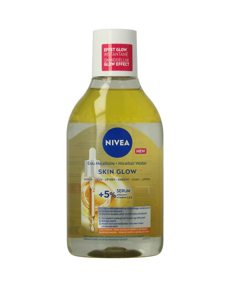 NIVEA Serum-infused Micellair Water Skin Glow verwijdert make-up en onzuiverheden, hydrateert diep met 5% serum en amino acid complex, en zorgt voor een stralende teint. Zacht en klinisch getest.
