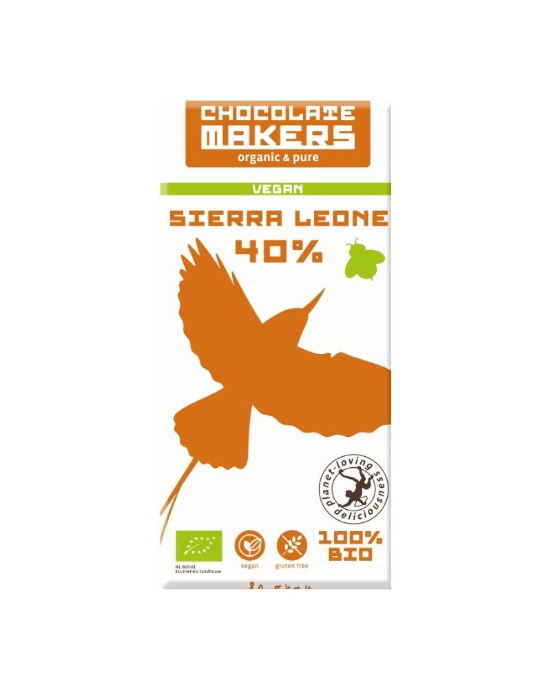 Sierra Leone 40% VEGAN - Heerlijke vegan chocolade gemaakt van cacao uit Sierra Leone en op basis van haver. De boeren van Village Hope stoppen veel liefde in de hoge kwaliteit biologische cacaobonen.