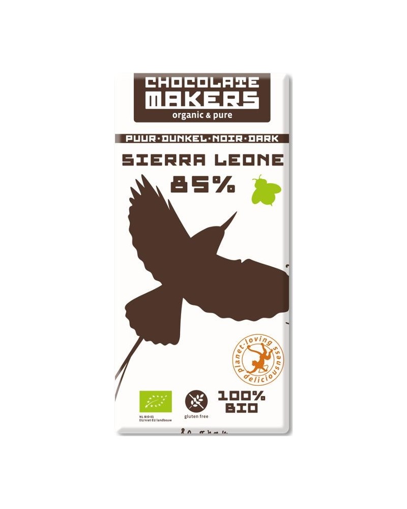 Sierra Leone 85% - Deze heerlijke pure reep wordt gemaakt van biologische cacao uit Sierra Leone. De boeren van Village Hope stoppen veel liefde en aandacht in hun cacao.