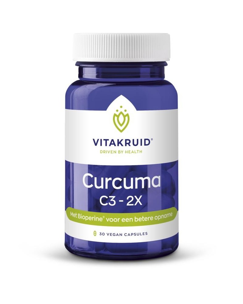 Vitakruid heeft in Curcuma C3-2X gekozen voor een ongeëvenaard curcuminecomplex van maar liefst drie soorten curcuminoïden! Hoewel de oliën met mono-en sesquiterpenen zeker effect hebben, zijn het van kurkuma vooral de curcuminoïden die zorgen voor de gezondheidsbevorderende effecten. Veel voedingssupplementen bevatten helaas uitsluitend curcumine I. Het extract dat Vitakruid gebruikt voor haar Curcuma C3-2X is gestandaardiseerd op de belangrijkste curcuminoïden: curcumine, bisdemethoxy curcumine en demethoxy curcumine. De perfecte mix volgens de huidige wetenschap!
