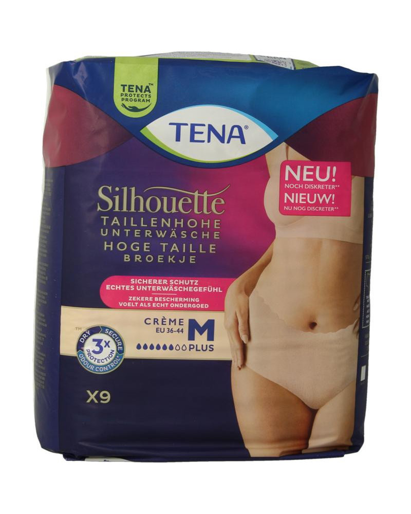 TENA Silhouette Plus High Waist Crème is incontinentieondergoed voor vrouwen. Het voelt aan als normaal ondergoed en is ontworpen voor matig tot zwaar urineverlies. Het ondergoed heeft zowel aan de binnen- als buitenkant een chique crèmekleur en is elegant discreet en stijlvol. Een hoge taille, vrouwelijk ontwerp en soft-fit stof zorgen ervoor dat het broekje op zijn plaats blijft zitten en uitstekende bescherming, draagcomfort en discretie biedt. De betrouwbare absorberende kern met Plus-niveau sluit zwaarder urineverlies nog sneller in en neutraliseert geuren voor een fris en vrouwelijk gevoel de hele dag door.