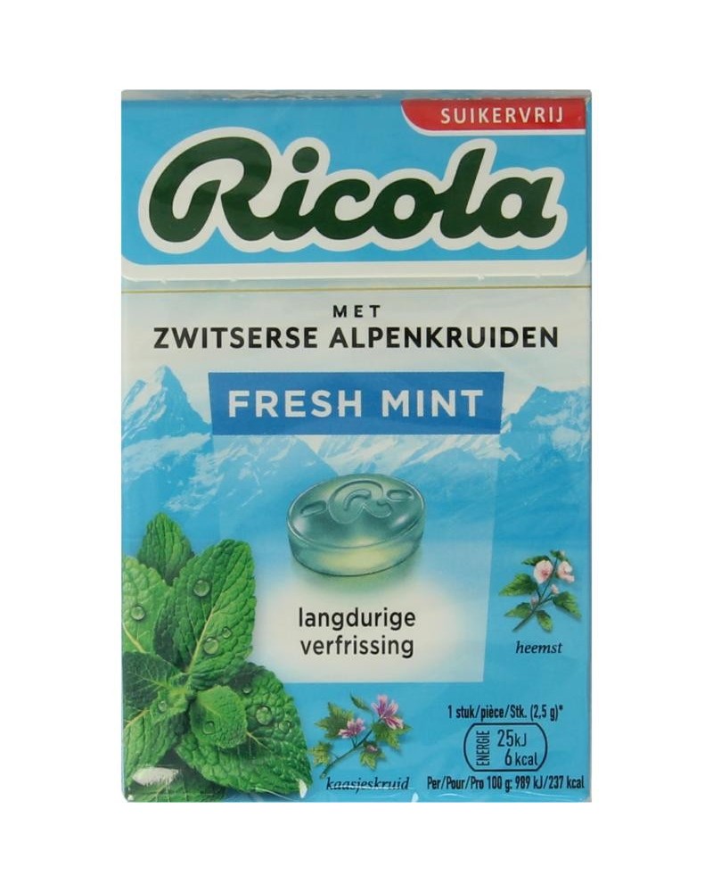 Ricola Fresh Mint suikervrije pastilles zijn een combinatie van onze 13 kruiden uit de Zwitserse Alpen met essentiële olie uit pepermunt uit langdurige verfrissing en een heerlijke, natuurlijke muntsensatie.