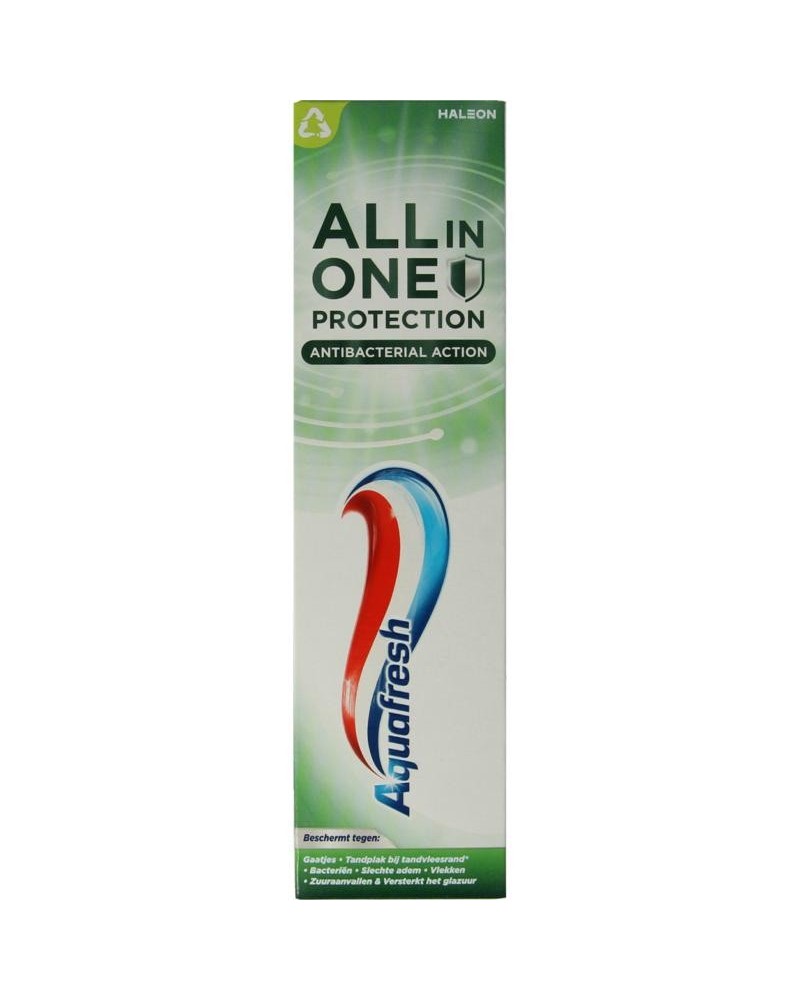 Aquafresh Tandpasta anti bacterial action reinigt de hele mond.