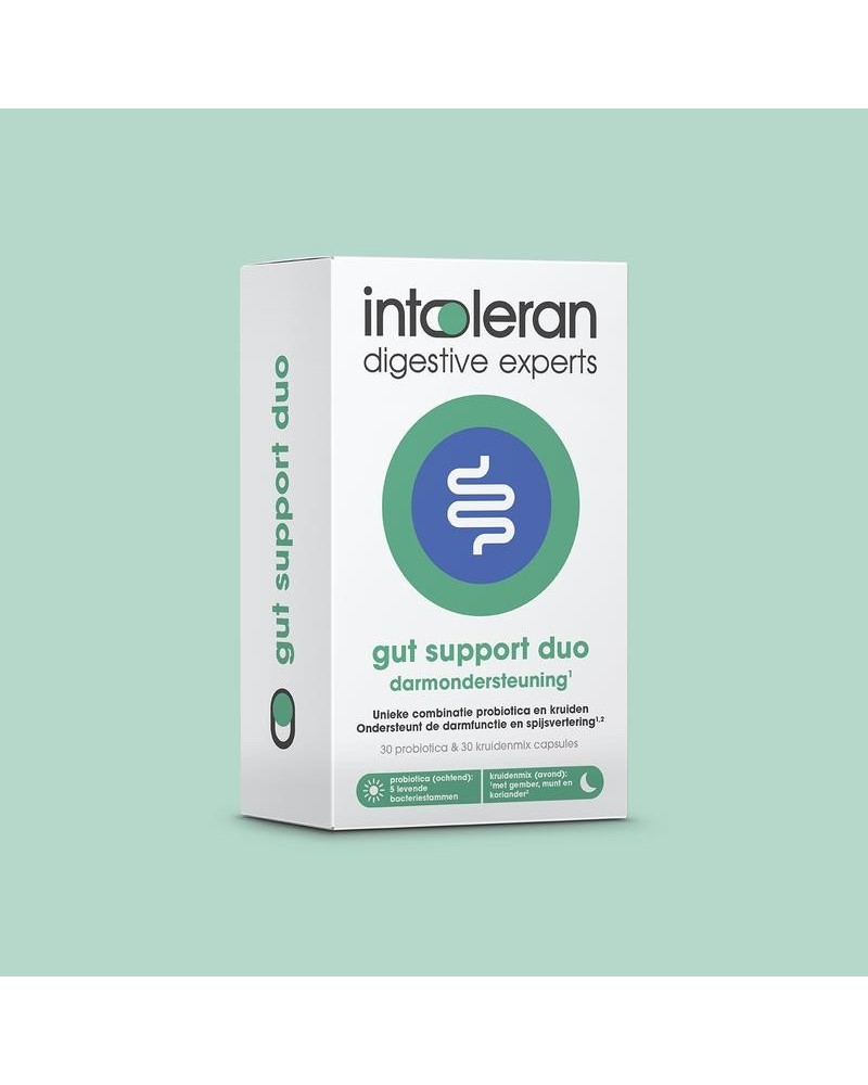 Intoleran Gut Support Duo is een combinatie van probiotica en kruiden.