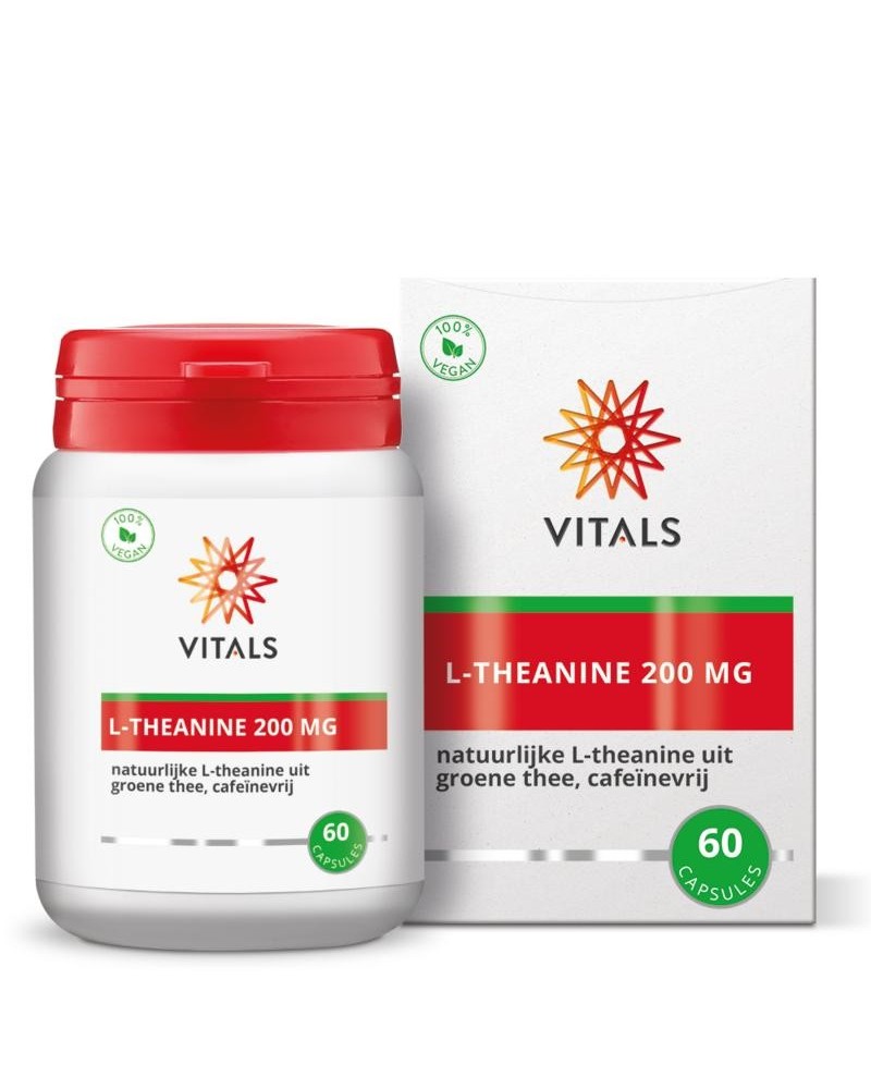 L-theanine uit groene thee (camellia sinensis, blad), rijstebloem (oryza sativa), plantaardige capsule (pullalan, uit gefermenteerde cassave-zetmeel), antiklontermiddelen (calciumzouten van vetzuren, siliciumdioxide)