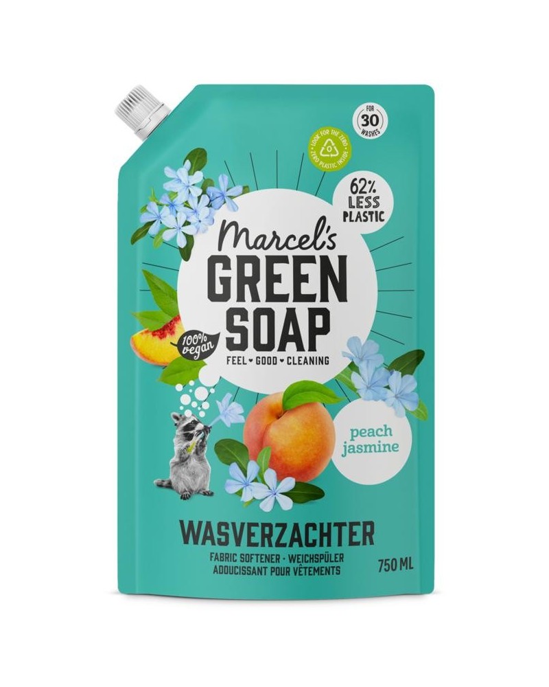 Marcel's Green Soap wasverzachter Perzik & Jasmijn laat jouw kleding en beddengoed heerlijk ruiken. Goed voor 30 wasbeurten. Met Marcel’s Green Soap wasverzachter was je niet alleen je wasgoed schoon, maar de wereld om je heen ook. En dat is hard nodig, want wasverzachters met schadelijke ingrediënten belasten onze planeet. Door voor de duurzame wasverzachter van Marcel's Green Soap te kiezen, hoef jij je daar geen zorgen om te maken. Ja je leest het goed: duurzame wasverzachter waar geen luchtje aan zit. Alhoewel… de unieke geurcombinaties van Perzik & Jasmijn