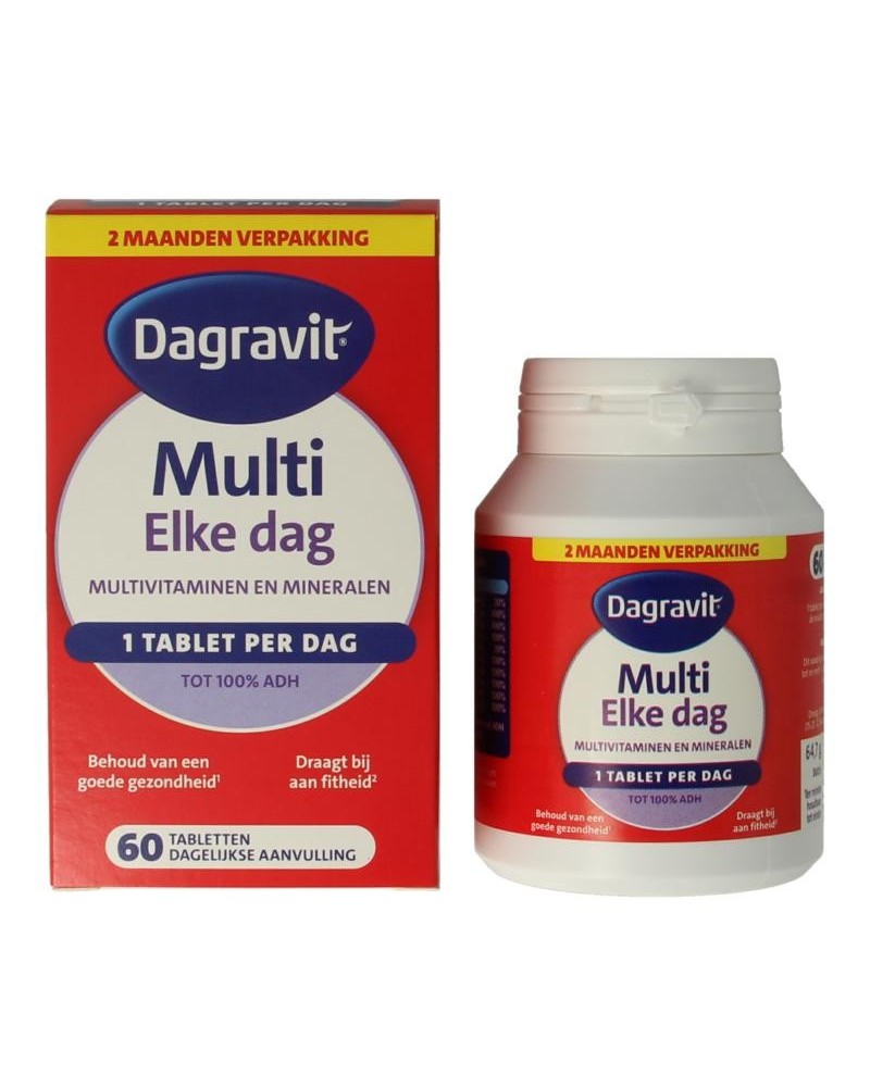 Dagravit Multi Elke Dag is speciaal ontwikkeld voor de dagelijkse aanvulling van vitaminen en mineralen. Het is een complete multivitaminen met essentiële vitaminen en mineralen in een optimale dosering (tot 100% van de dagelijkse aanbevolen hoeveelheid).