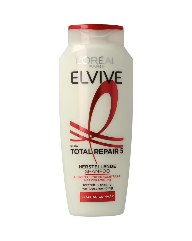 L’Oréal Paris Elvive Total Repair 5 Herstellende Shampoo is speciaal ontwikkeld voor beschadigd haar. De formule bevat herstellend concentraat met ceramiden. Deze formule herstelt en versterkt het haar, maakt het makkelijker door te kammen, verzorgt en pakt de vijf tekenen van beschadigd haar aan: