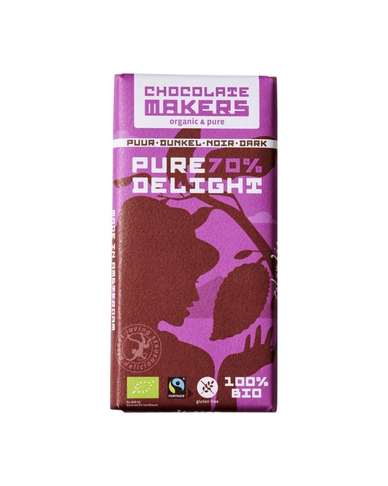 Fruitige pure chocolade met tonen van bessen. De bonen komen van vrouwencoöperaties in Colombia, behorende tot de inheemse Arhuaco bevolking, die nu mede dankzij de cacao stabiele inkomsten hebben.