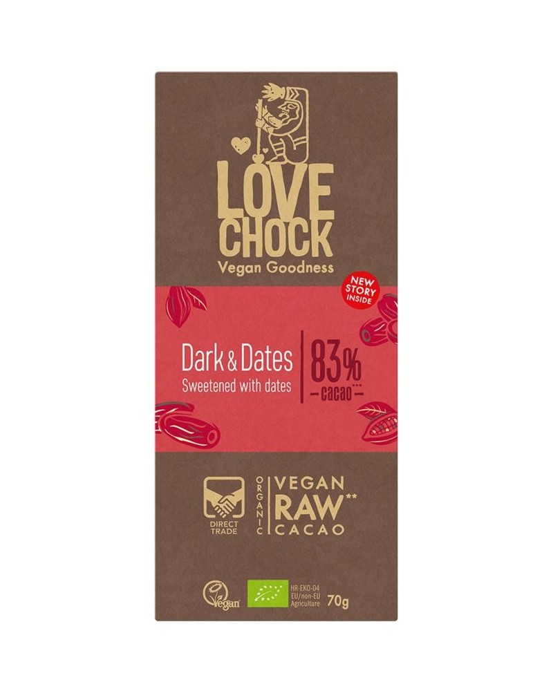 Lovechock is 100% biologisch en vegan, geschikt voor een plantaardig dieet, bevat flavanolen en is lactose-, soja- en glutenvrij.