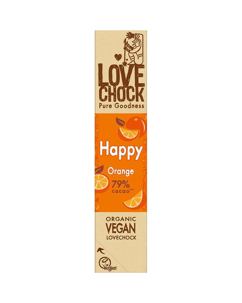 Zacht en heerlijk, Happy is een bijzondere traktatie voor jezelf of voor een speciaal iemand. Extravagant zachte en veganistische pure chocolade gecombineerd met fruitige sinaasappel.