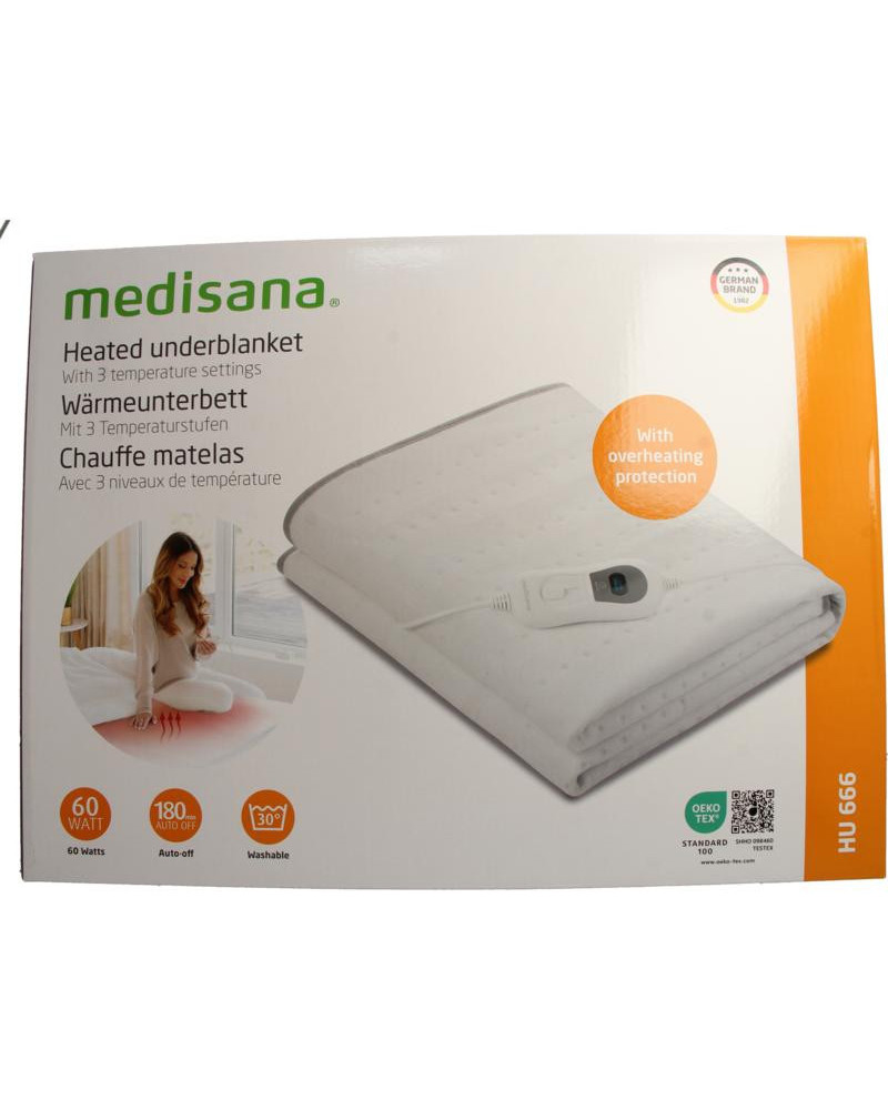 Met de HU 666 verwarmde onderdeken van Medisana kunt u uw hele lichaam zacht verwarmen en ontspannen. De verwarmde onderdeken past op matrassen met een lengte van 150 cm en een breedte van 90 tot 100 cm. De technologie zorgt voor een gelijkmatige verdeling van de warmte. Een veiligheidssysteem met oververhittingsbeveiliging laat je met een gerust hart ontspannen. Bovendien schakelt de verwarmde onderdeken na 180 minuten automatisch uit. Dankzij de afneembare schakelaar kun je de verwarmde onderdeken ook wassen op 30 graden.