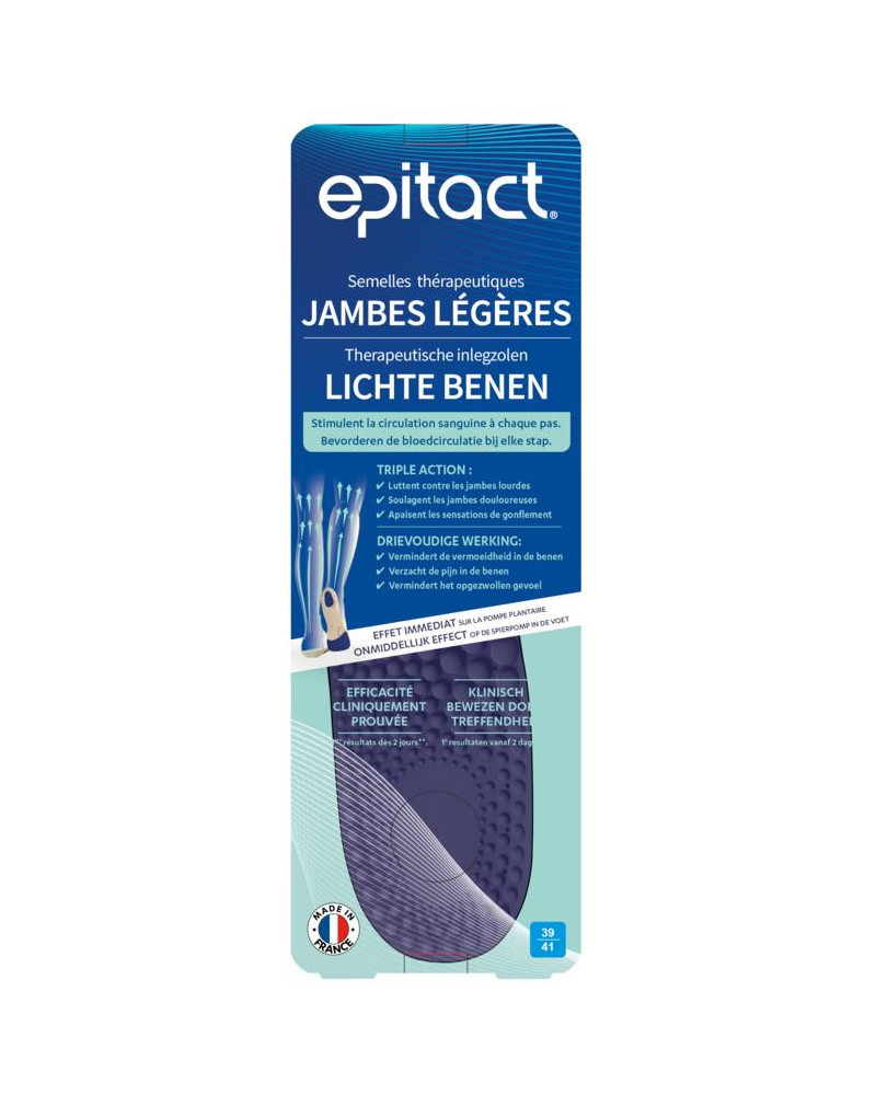 De LICHTE BENEN INLEGZOLEN van EPITACT® worden aanbevolen voor mensen met een verstoorde bloedcirculatie van de onderste ledematen, veneuze insufficiëntie en beginnende spataderen.