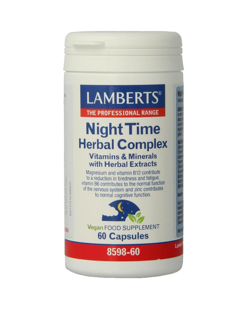 Magnesiumbisglycinaat, Capsule (Hydroxypropyl Methylcellulose), L-tryptofaan, Citroenmelisse Bladextract (Melissa officinalis), Antiklontermiddel (Magnesiumstearaat & Siliciumdioxide), Passiebloem bloemenextract (Passiflora incarnata), Zinkcitraat, Kamille bloemenextract (Matricaria recutita), Hop bloemenextract (Humulus Lupulus L.), Niacine (Nicotinamide), Vitamine B6 (Pyridoxaal-5-Fosfaat Mmonohydraat), Thiamine Hydrochloride, Vitamine B12 (Methylcobalamine).