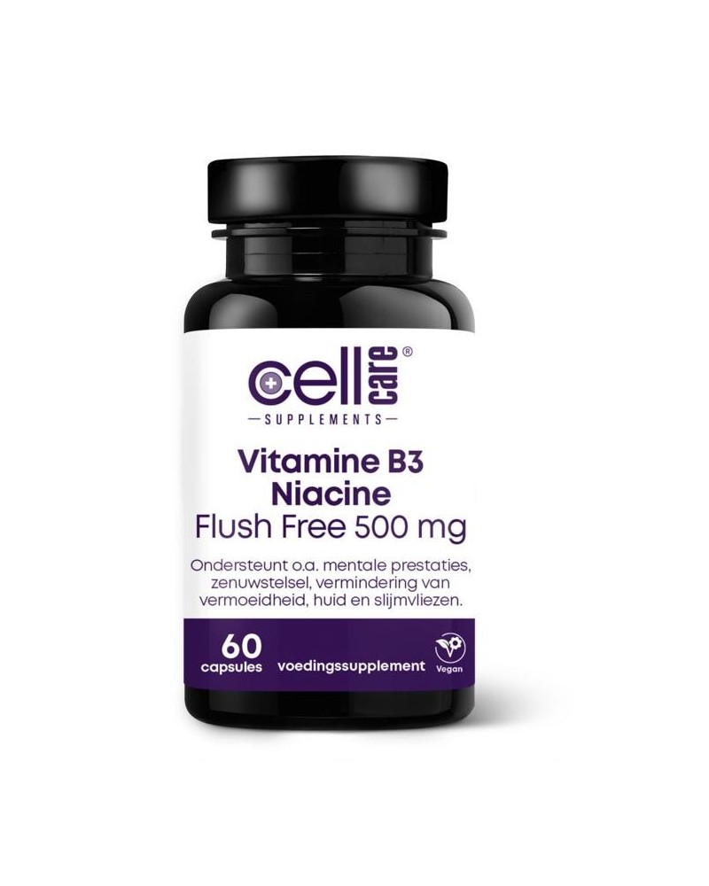 Niacine Flush Free 500 mg is een hoog gedoseerde vorm van niacine (vitamine B3), waarbij geen zogenoemde ‘flushes’ optreden. Flushes zijn warmte opwellingen en roodkleuring van de huid als gevolg van vaatverwijding door een bepaalde vorm van vitamine B3.