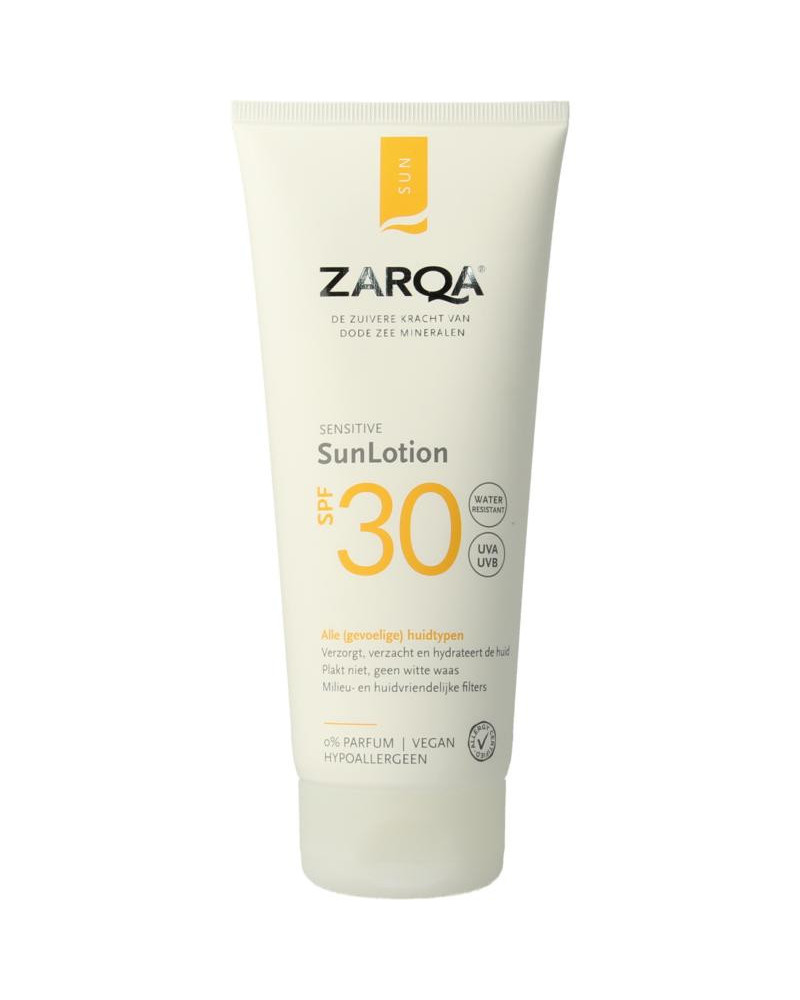 ZARQA SunLotion SPF30 met huid- en milieuvriendelijke UVA/UVB filters is zonbescherming met een hoge SPF voor intensieve bescherming van zelfs de meest gevoelige huid.