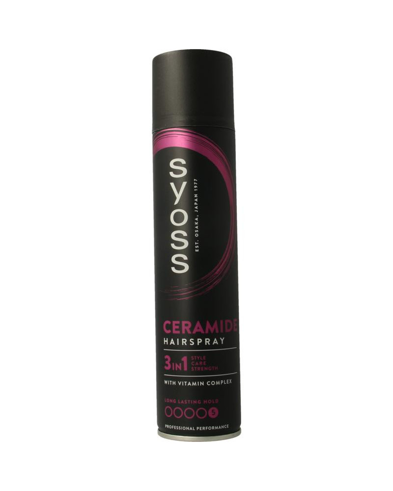 Syoss Ceramide Complex Haarspray met Ceramide-Keratin-Complex versterkt het haar en geeft langdurige hold en sterke fixatie.