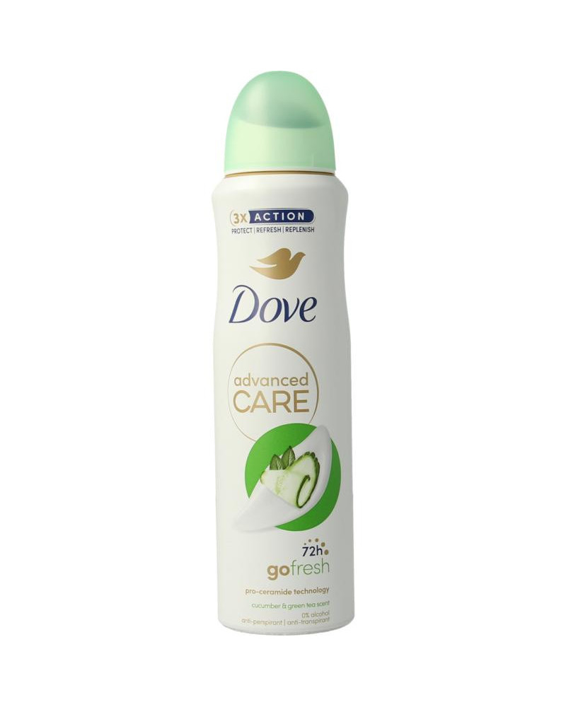 Dove Advanced Care Go Fresh Cucumber & Green Tea Anti-Transpirant Deodorant Spray beschermt tegen zweet en verzorgt de huid.