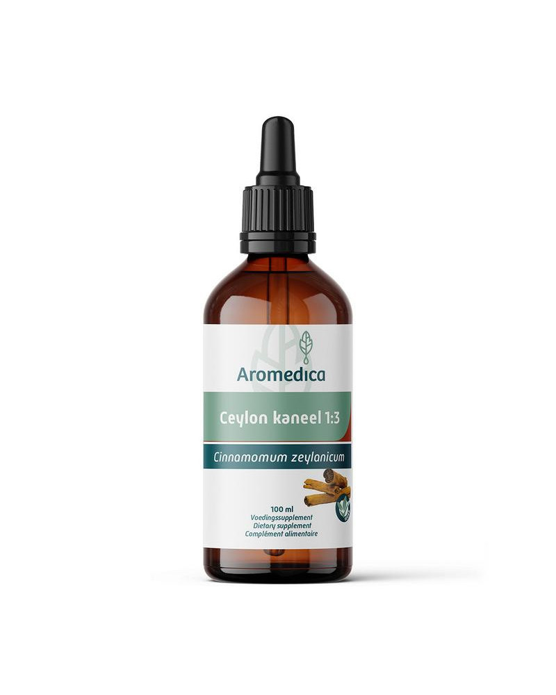 Aromedica Ceylon kaneeltinctuur (Cinnamomun zeylanicum) is van BIO kwaliteit en verkregen door een maximaal geconcentreerde alcoholische extractie (verhouding één op drie van de bast).