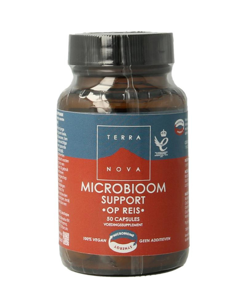 Terranova Microbioom Support Op Reis bevat zorgvuldig geselecteerde en wetenschappelijk onderzochte microflora, gebaseerd op de laatste inzichten over het menselijke microbioom.