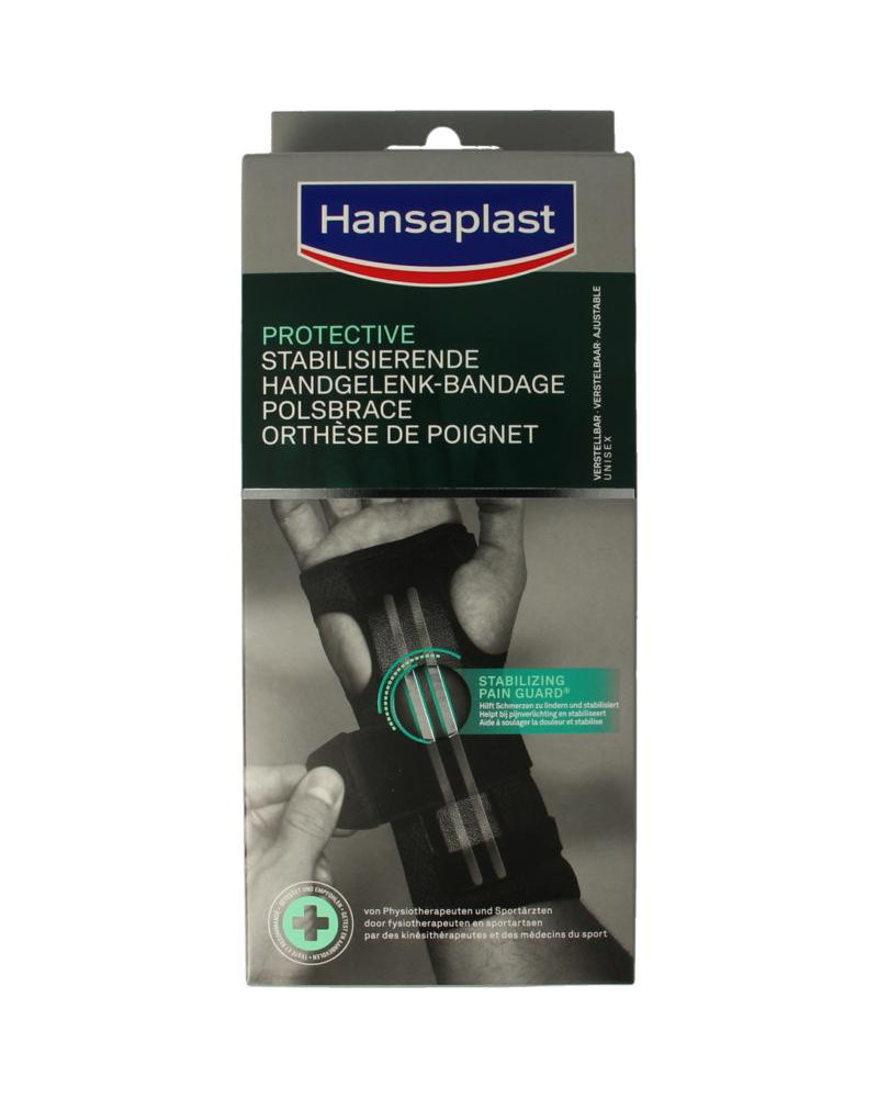 Hansaplast Protective Polsbandage De Hansaplast Protective Polsbandage helpt zwakke of geblesseerde polsen te ondersteunen en te beschermen tegen verder letsel. De bandage geeft een matig niveau van ondersteuning tijdens activiteiten en de mate van compressie kan worden aangepast aan uw persoonlijke behoeften.