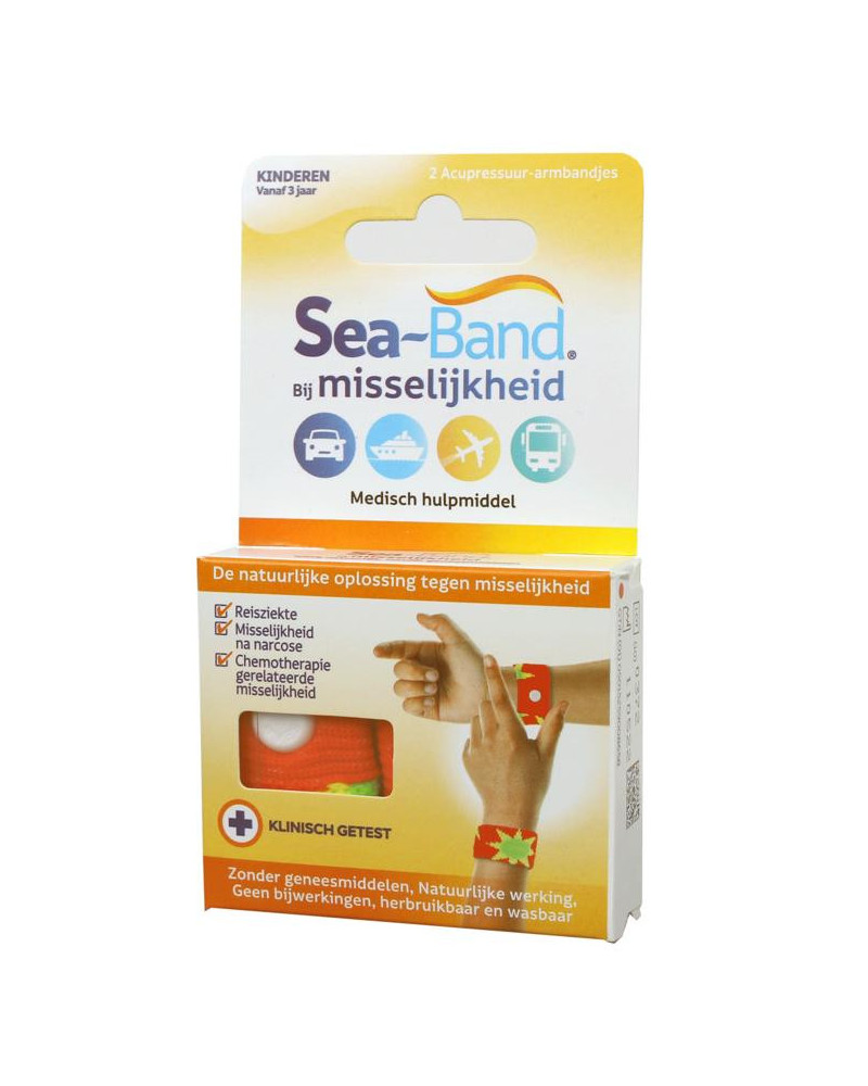 Sea-Band een effectief natuurlijke oplossing, klinisch getest, geeft verlichting bij misselijkheid bij o.a. reis- en bewegingsziekte zonder slaperigheid of andere bijwerkingen te veroorzaken.