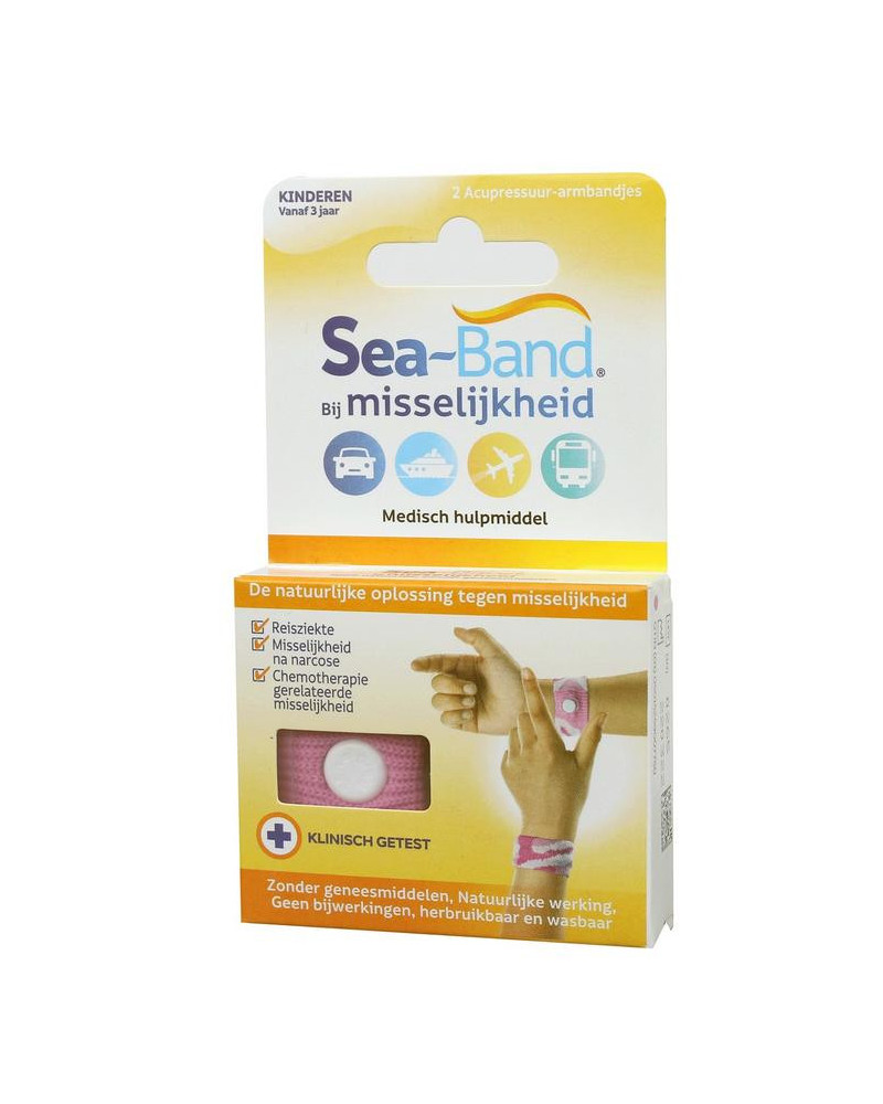 Sea-Band een effectief natuurlijke oplossing, klinisch getest, geeft verlichting bij misselijkheid bij o.a. reis- en bewegingsziekte zonder slaperigheid of andere bijwerkingen te veroorzaken.