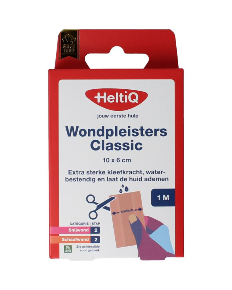 - HeltiQ Wondpleisters Classic zijn waterbestendig, vuilafstotend, latexvrij en beschikken over een absorberend niet verklevend wondkussen.