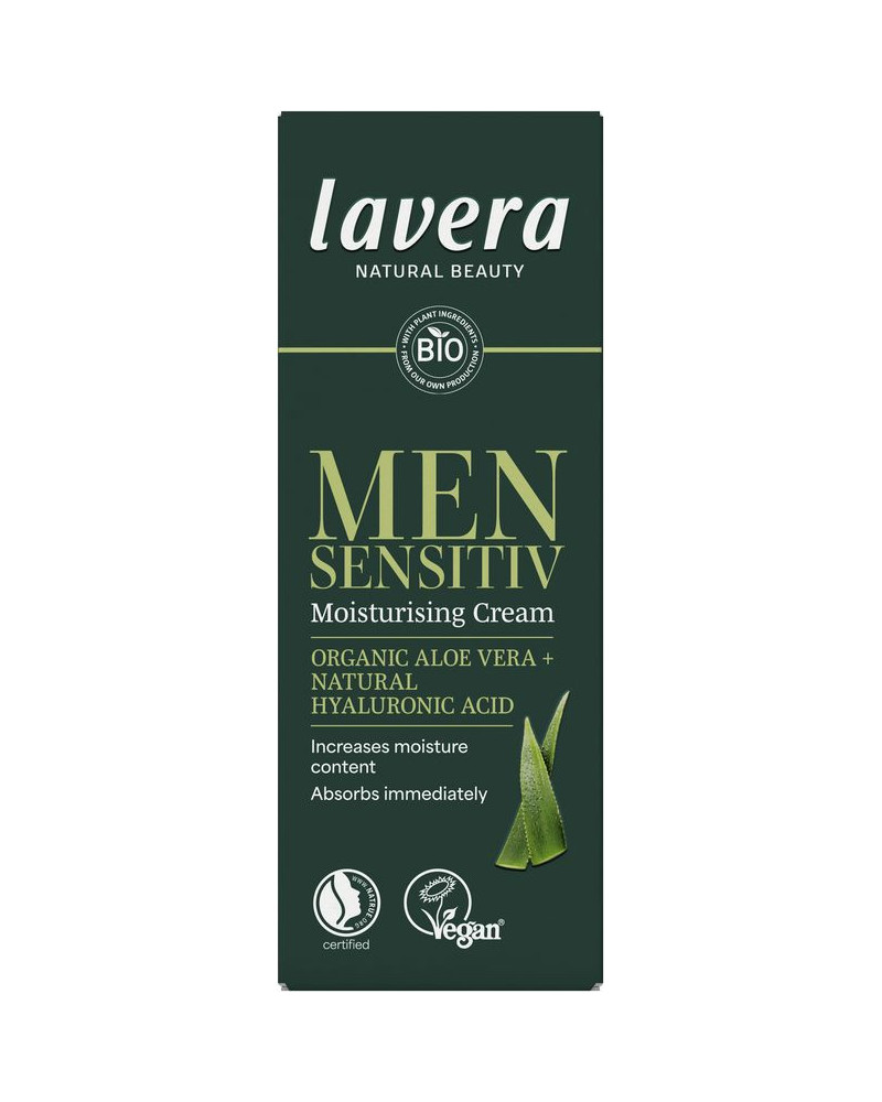 Milde, effectieve natuurlijke cosmetica: lavera Men Sensitiv hydraterende creme biedt intensieve hydratatie.